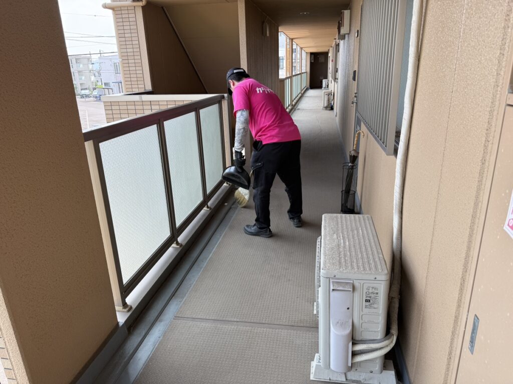 搬出時に落ちたゴミ、ホコリなどを最後に掃いてきれいにして完了です!
