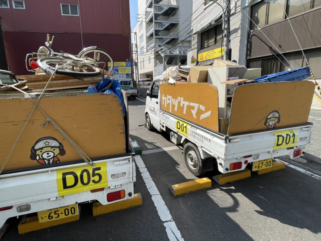 2車詰め放題で自転車やスチールラック、木製棚、小型家電、ふとん、破砕ゴミ、木の板など回収しました。