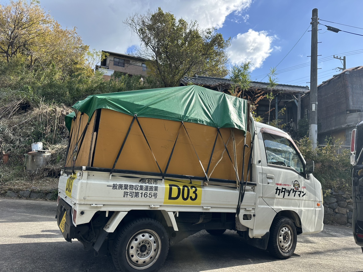 リピーター様からのご依頼で屋島西町に出動! 剪定した庭木、雑草の回収をさせていただきました。 剪定した庭木は一か所にまとめて、雑草は袋に入れてくださっていたので スムーズに積み込みができました。ありがとうございます。 カ […]